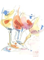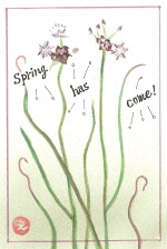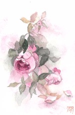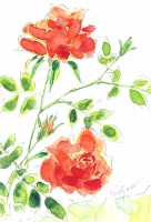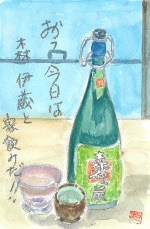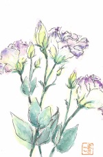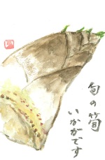墨と透明水彩で描いた絵手紙だけでなく、